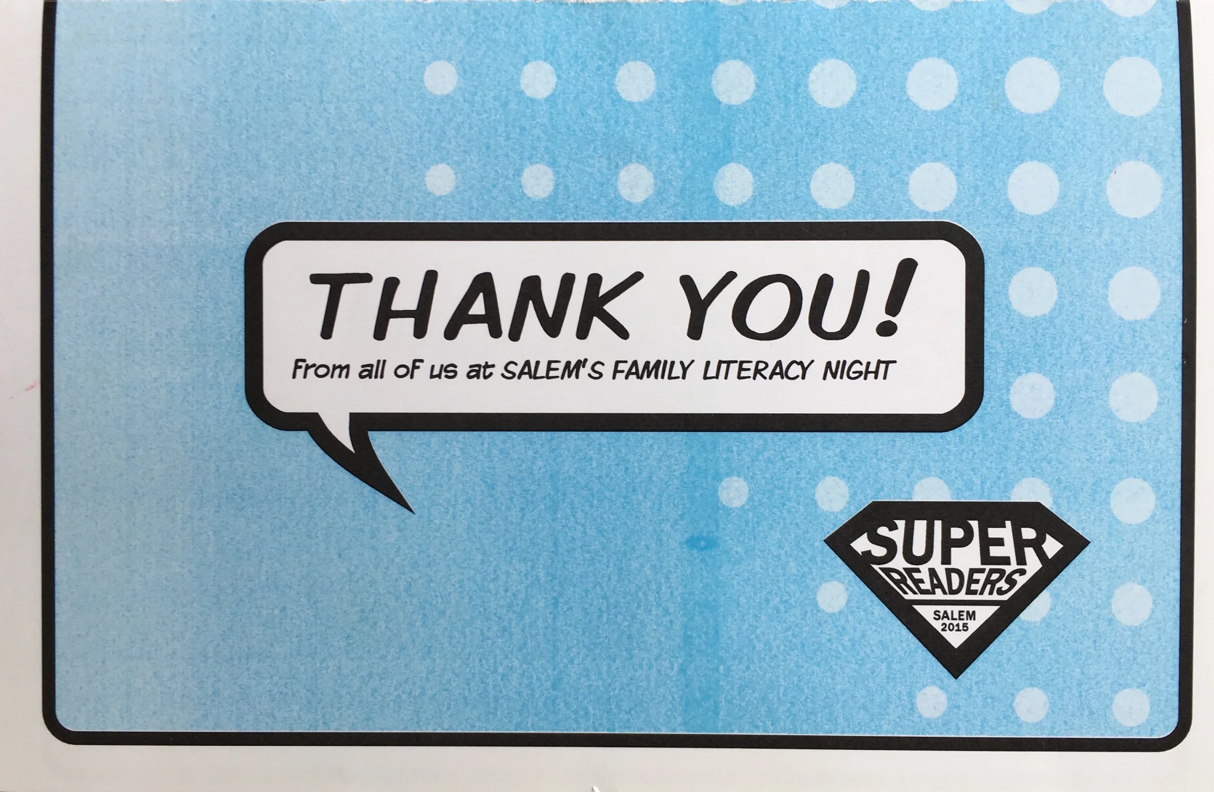 This is the flyer and thank you letter I received from Salem's Family Literacy Night: